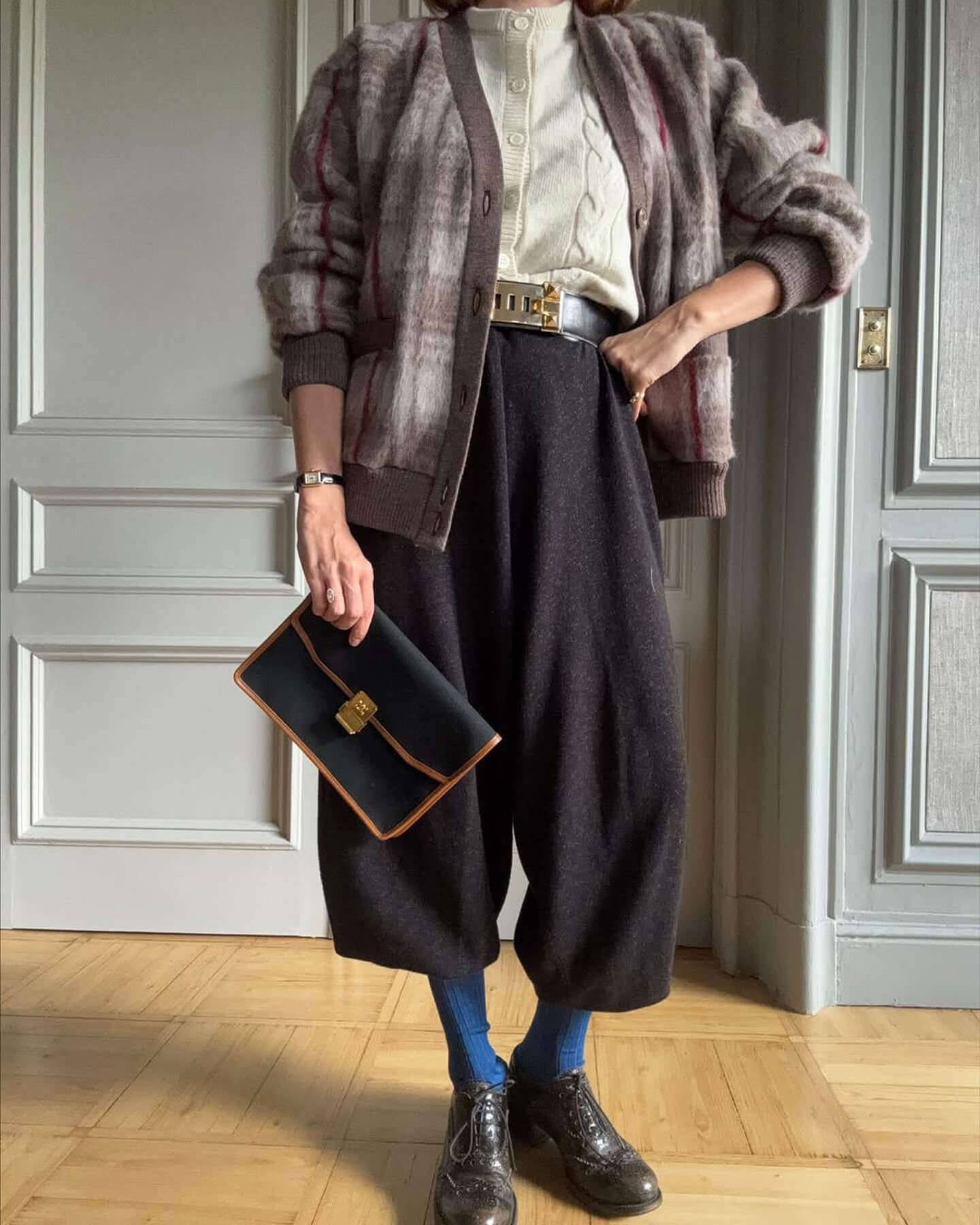 Тем, кто до последнего не хочет доставать из шкафа зимнюю одежду, в этом сезоне везет: инфлюенсеры раз за разом предлагают носить свитеры и кардиганы поверх других свитеров и кардиганов. Это не только тепло, но и стилистически продуманно: к вечеру более базовый трикотаж можно снять, а в нарядном — пойти на выставку или свидание.