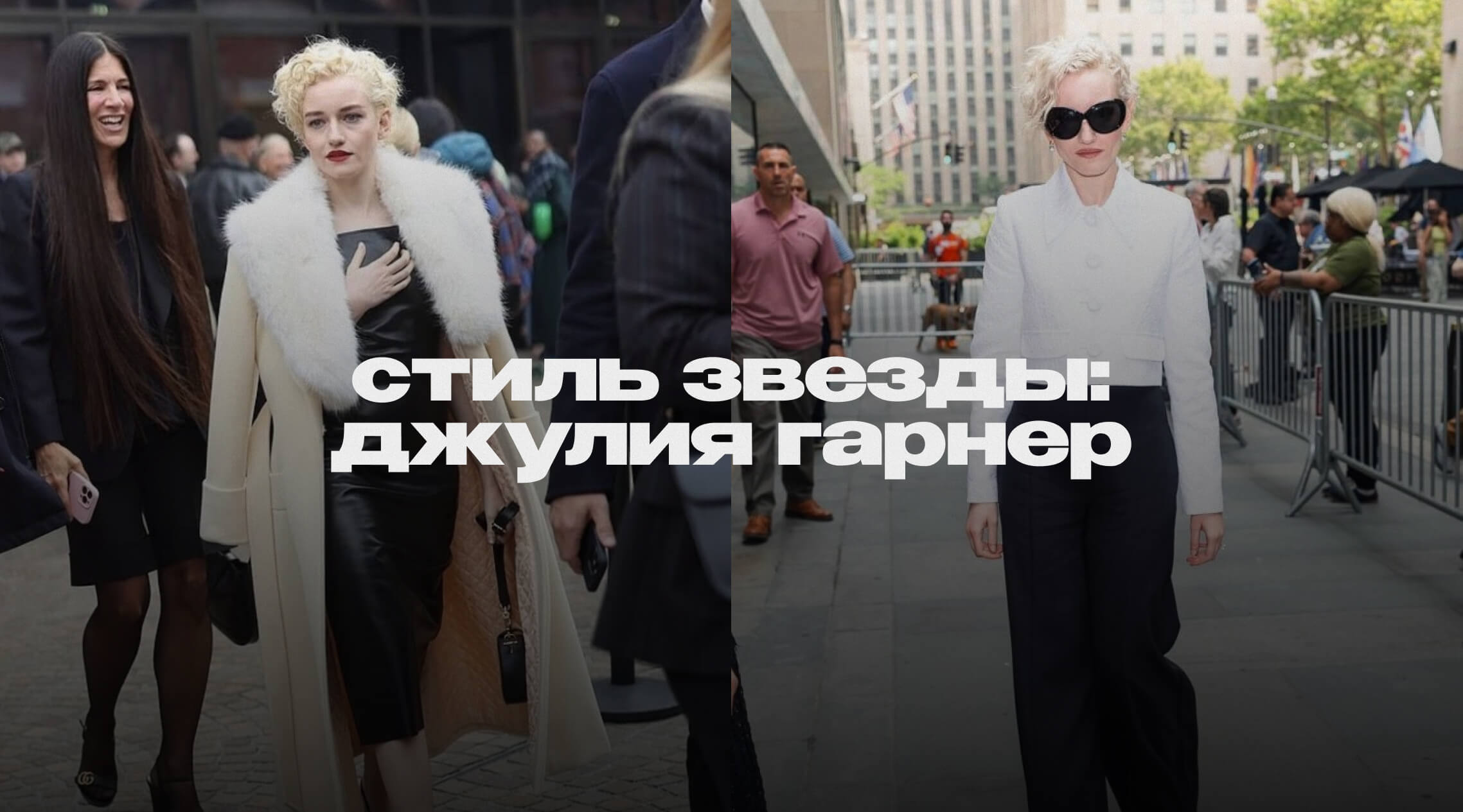 Укороченный белый пиджак, широкие брюки со стрелками — общая форма в этом образе отвечает за женственность, а нюансы придают строгости. Если хотите подчеркнуть первое, выбирайте «мягкие» аксессуары: с жемчугом, бисером или плетением. А если усилить второе, то геометричные, из чистых металлов.