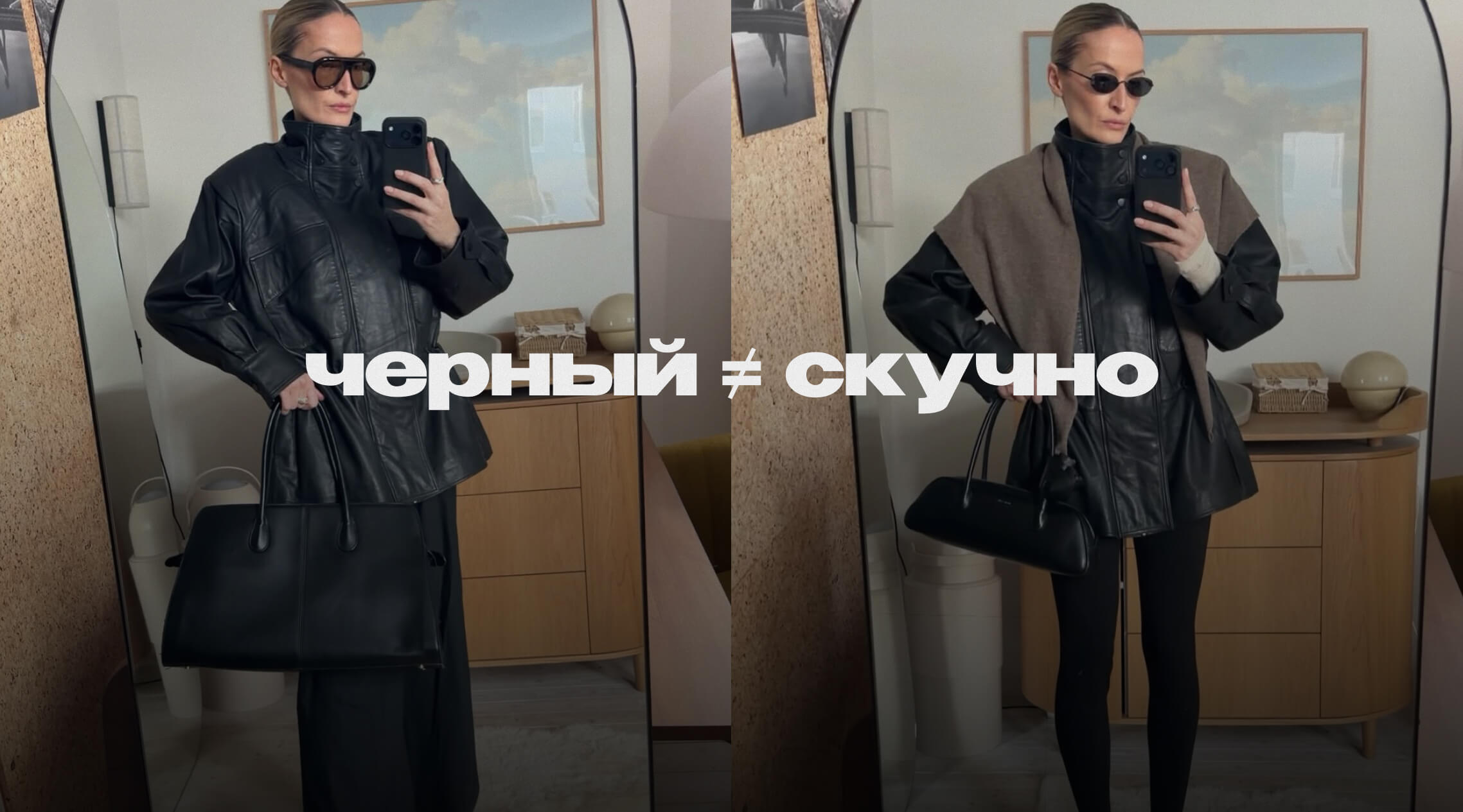 Нет ничего универсальнее достаточно широких черных брюк и достаточно объемного тоута, но бывают моменты, когда надежность наскучивает, а дресс-код никто не отменял. Спасают аксессуары и нестандартный верх: очки, будто найденные в реквизите Пола Томаса Андерсона, и кожаная парка в духе скандинавских женщин-детективов. Осторожно: в этом образе захочется остаться на работе допоздна и пить больше кофе, чем обычно.