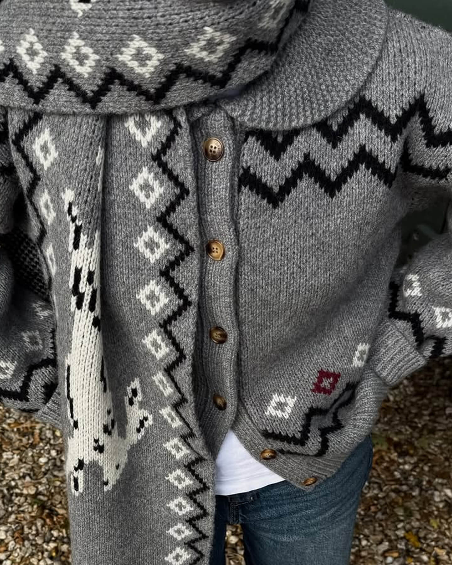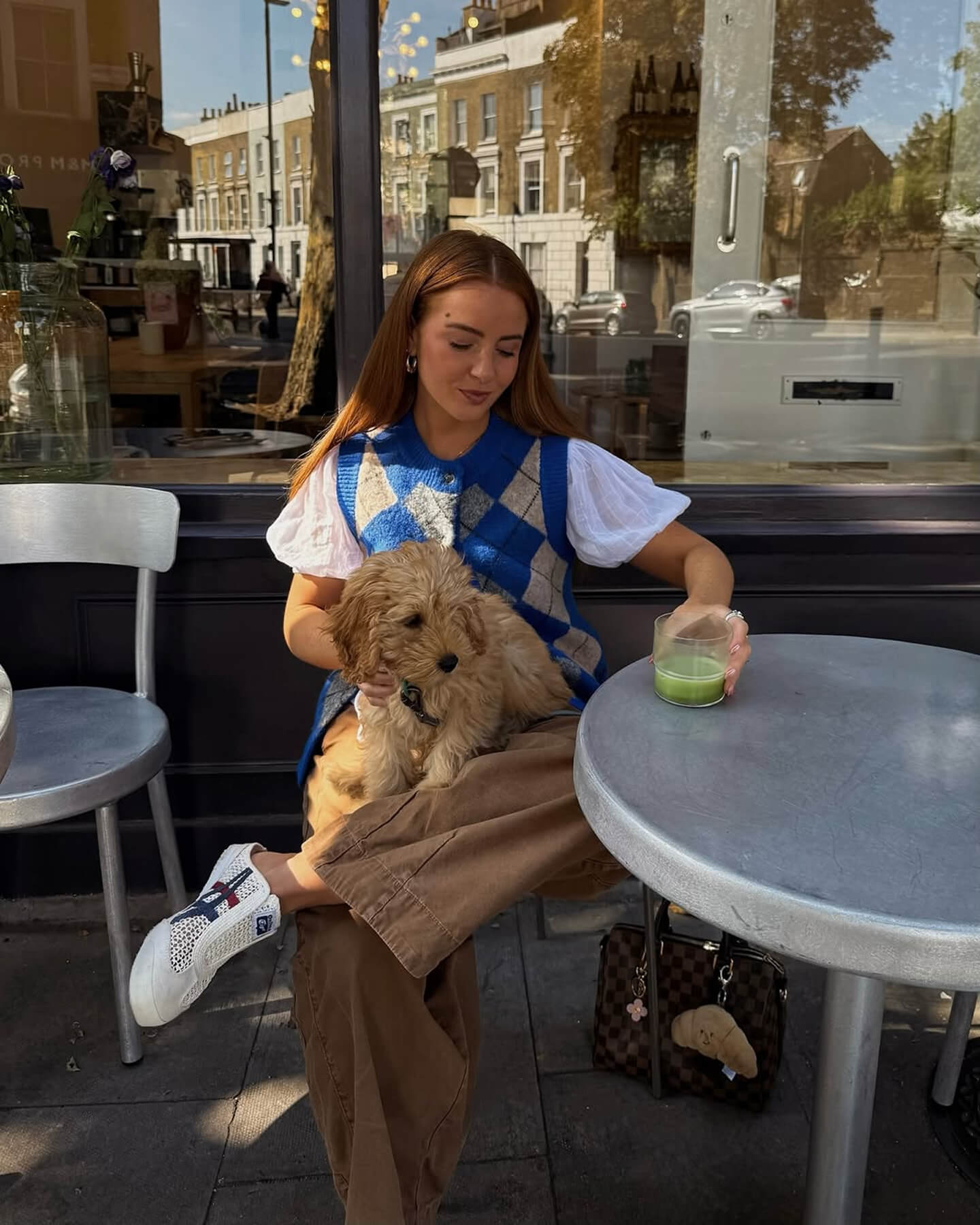 Аргайл-джемпер плюс деним и меховые лоферы