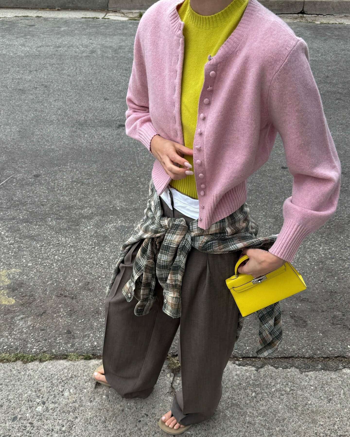 Трикотажный кардиган поверх трикотажного джемпера