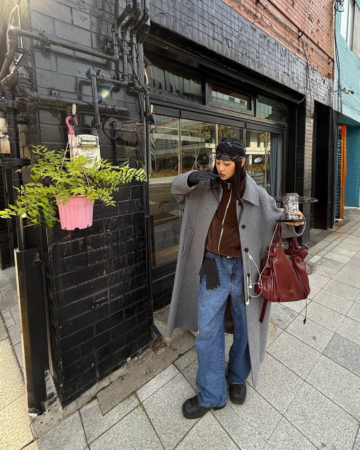 Образ со слегка маскулинным бомбером и удобными джинсами может быть самостоятельными, а может работать как первый слой для многослойного стайлинга в холода: накидывайте сверху пальто и дополняйте аксессуарами — от контрастной сумки до перчаток в роли брелка на поясе. Обилие разных текстур заставляет задержать взгляд на аутфите, все вещи в котором по отдельности — простые.